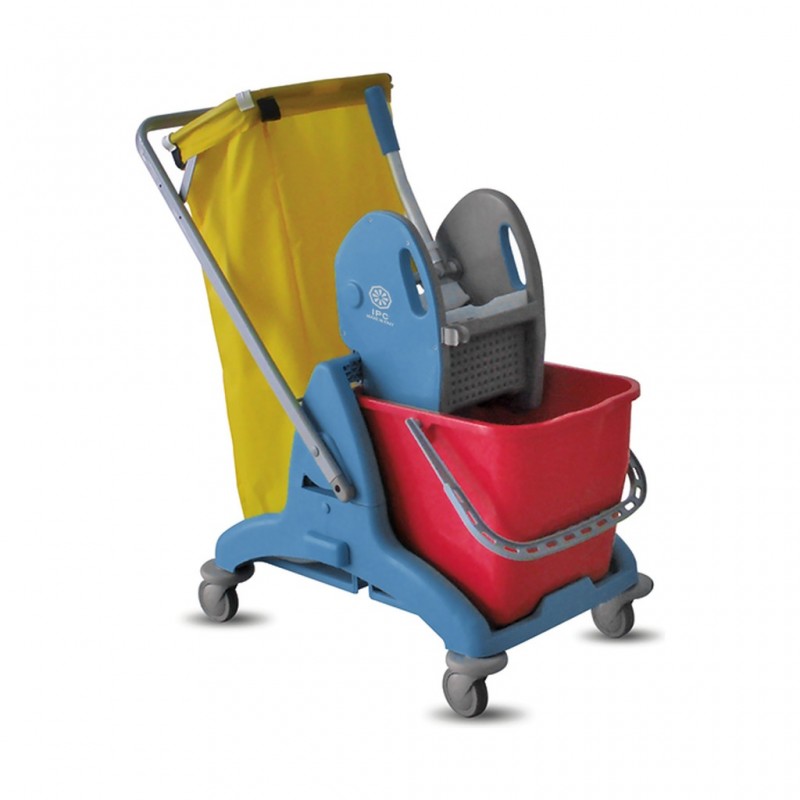 Galeata profesionala cu storcator, pe cadru cu roti, cu suport pentru sac de gunoi.