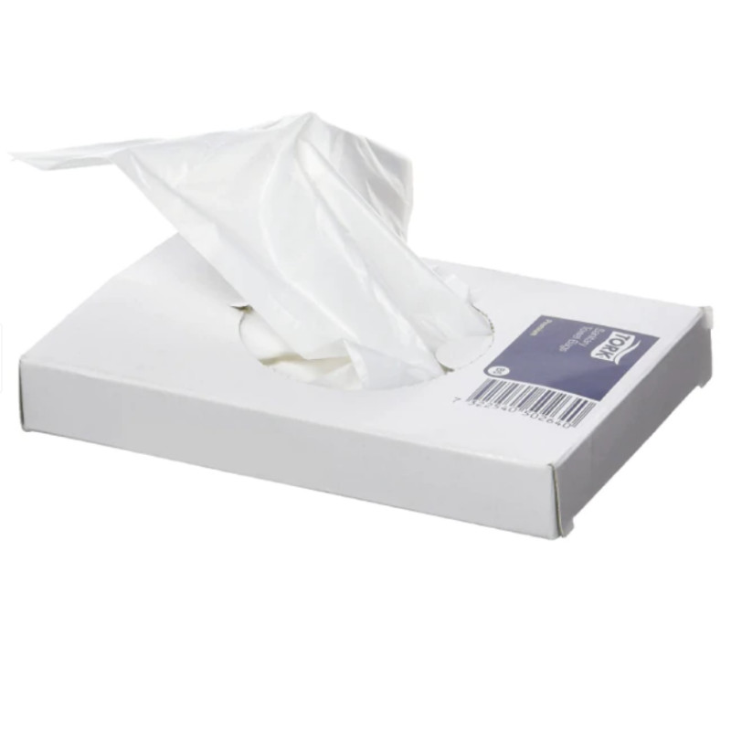 Punguta Sanitara Tork este ideala pentru eliminarea curata si discreta a reziduurilor igienice, retinand mirosul in interior atunci cand este pusa in cosul de gunoi.