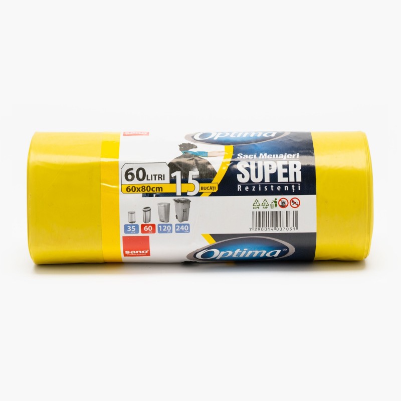 Saci menaj 60l, SANO, calitate superioara,15 saci/rola