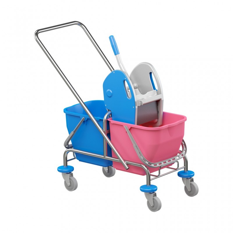 Sistem cu doua galeti de 25 litri fiecare, cu storcator ultra-rezistent, pe cadru metalic cromat cu roti.
